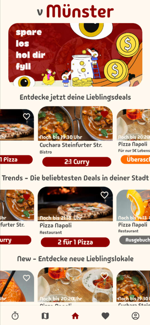 Öffne die App und schaue welche Deals jetzt gerade live sind!